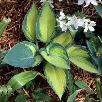 Преимущества сорта: Хоста Джун отличается своей декоративностью и неприхотливостью. Листья этого сорта имеют уникальную окраску, сочетая в себе оттенки зелёного и жёлтого, что придаёт саду особую привлекательность. Растение устойчиво к болезням и вредителям, а также хорошо переносит тень, что делает его идеальным для посадки в полутенистых уголках сада.