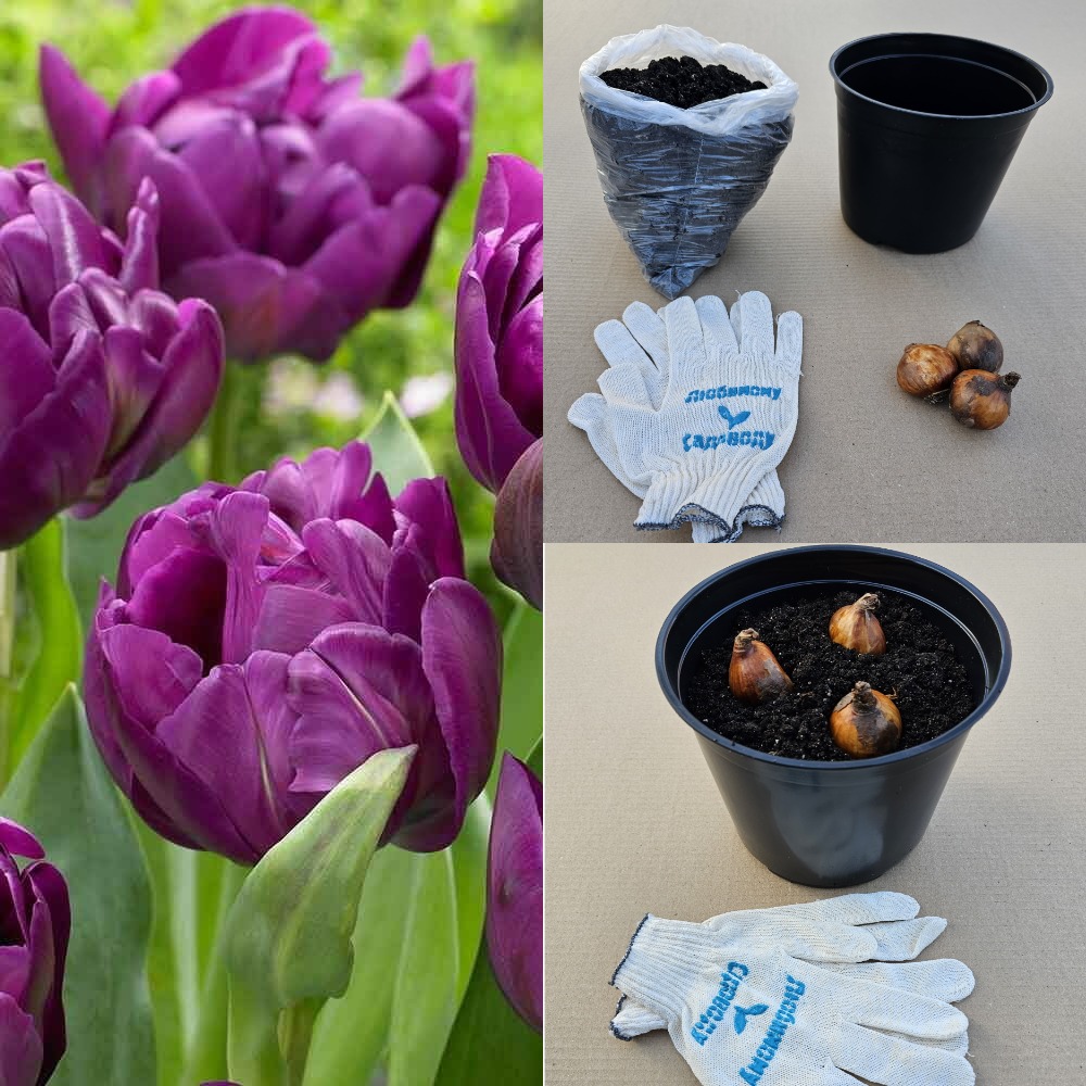 Комплект для выгонки 3 луковиц - Тюльпан Негрита Дабл