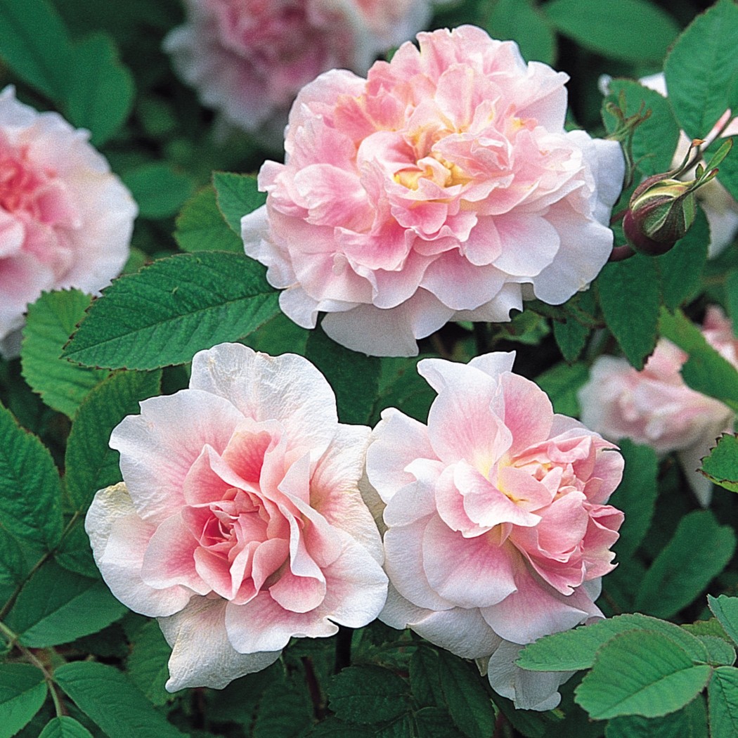Роза канадская парковая Мартин Фробишер (Martin Frobisher) - это один из самых зимостойких сортов, который радует своим цветением до первых заморозков. Этот сорт из серии Explorer отличается нежными молочно-розовыми цветками, которые с обратной стороны почти белые. Лепестки загибаются внутрь, образуя в центре пуговку. Цветки появляются в кистях по 3-5 штук на длинных изящных стеблях, что делает их идеальными для срезки. Однако, они темнеют перед тем, как опадают. Плоды не образуются. Листья матовые серо-зеленые, здоровые.